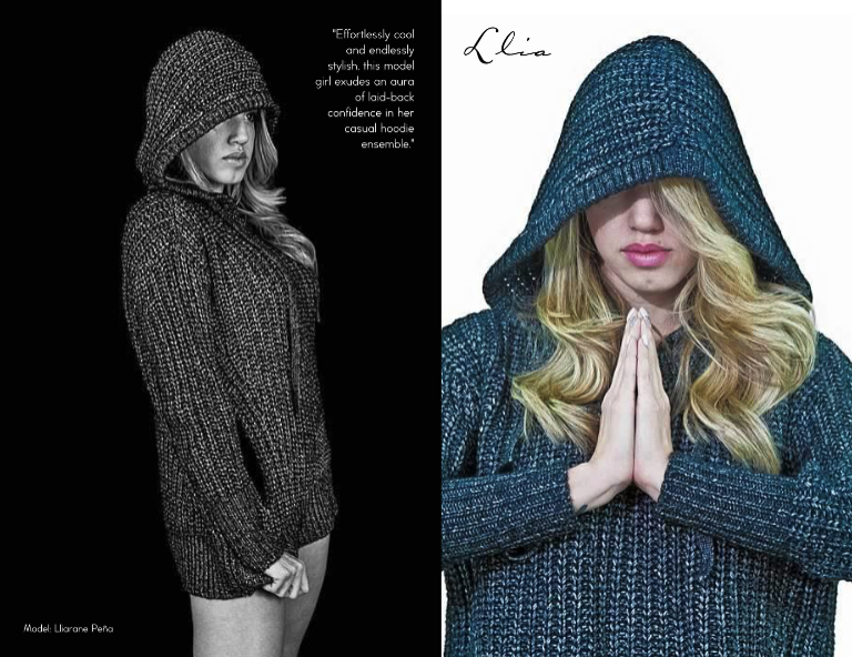 “Effortlessly cool and endlessly stylish, this model girl exudes an aura of laid-back confidence in her casual hoodie ensemble.”