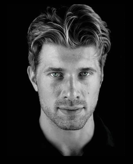 “Capturing timeless beauty in monochrome – A striking portrait of a handsome male model in black and white.”